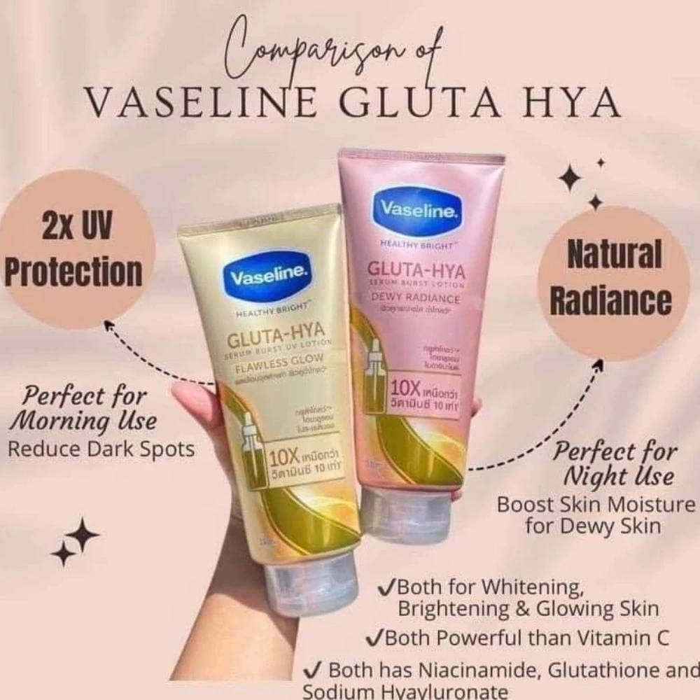 Vaseline Gluta - Hya Dewy Radiance & Flawless Glow Serum Burst UV Face Body Lotion 300ml